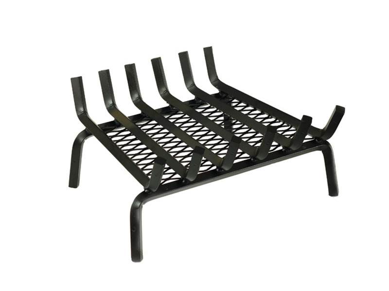 Stoll Industries' Stainless Steel Ember Grate is handcrafted in the USA with 3/4" bars and is available in various sizes. It can be made from steel for indoor use or stainless steel for outdoor applications. This is a heavy-duty fireplace grate with an integrated stainless steel mesh designed to hold hot embers, allowing them to stay closer to the fire's surface for a more efficient and hotter burn.