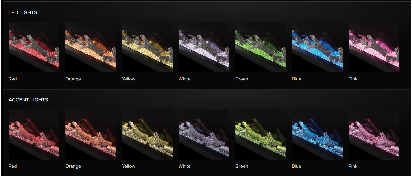 - SET THE MOOD: Create the perfect setting from the seven flame colors, six different ember bed colors, cycle setting, or have it fade in and fade out