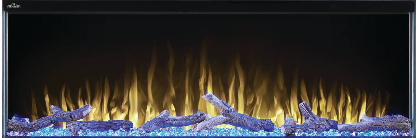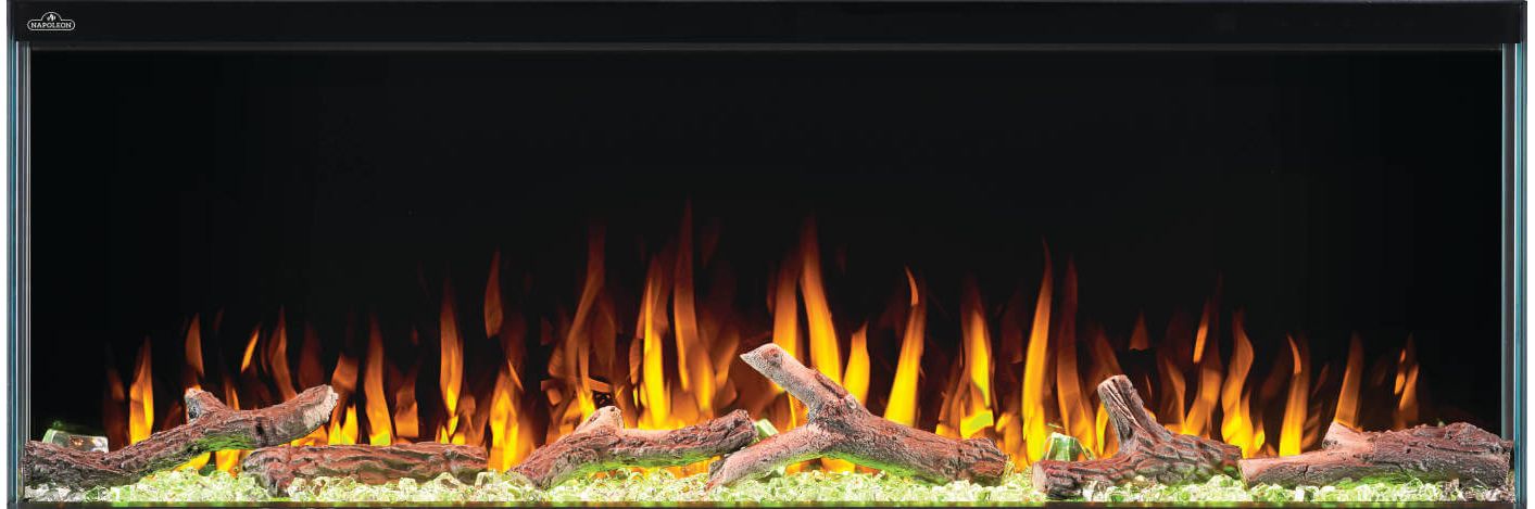 Napoleon's Trivista Primis, a three-sided electric fireplace, boasts the highest heat output in its category. Showcase the fireplace with the Northern Woods log set or acrylic crystals, or combine both for an amazing display. Effortlessly control all features using the included remote or the touchscreen panel with motion proximity sensor. Seven different flame colour settings and brightness adjustments make this fireplace perfect for any time of day. Included end panels allow for two-sided or one-sided installation. Enjoy year-round with the no-heat option while still enjoying the luminous flames.