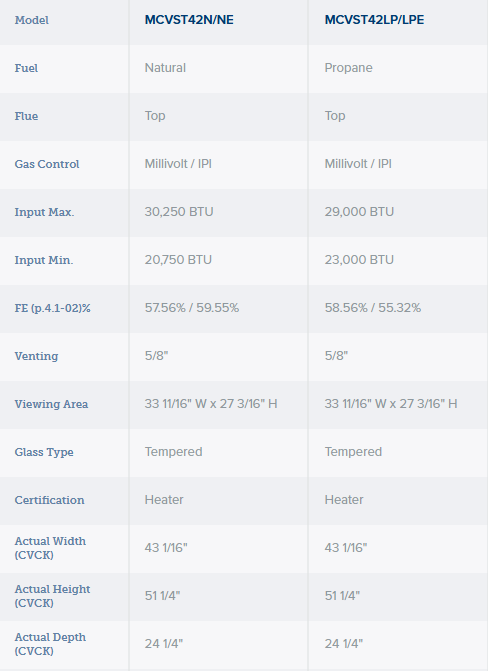 Click to see the Kingsman Fireplaces MCVST42 Owners ManualGet a custom quote from one of our pros—you’ll be glad you did! E-mail info@woodstovepro.com or call 888-418-0005.