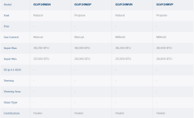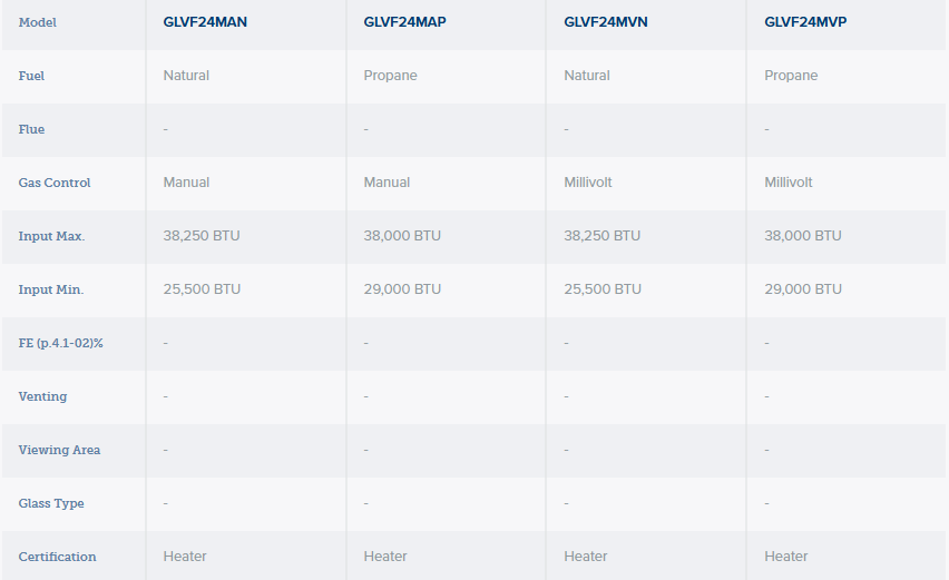 - Hi/low Millivolt or manual valve with variable adjustment of flame and BTU