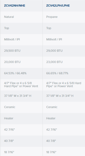 - Millivolt or IPI valve system allows operation during a power failure with Hi/Low heat and flame adjustment