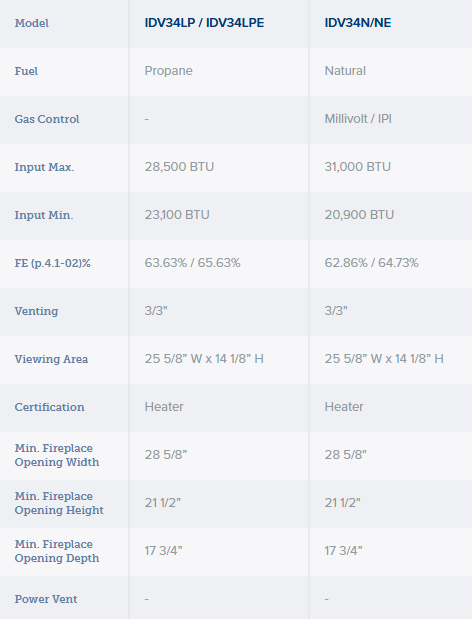 - Proflame II Models include Remote Control – features flame, fan, thermostat, and smart thermostat (Smartphone – local WiFi only): IDV24NE2, IDV24LPE2, IDV34NE2, IDV34LPE2, IDV44NE2, IDV44LPE2 Models only