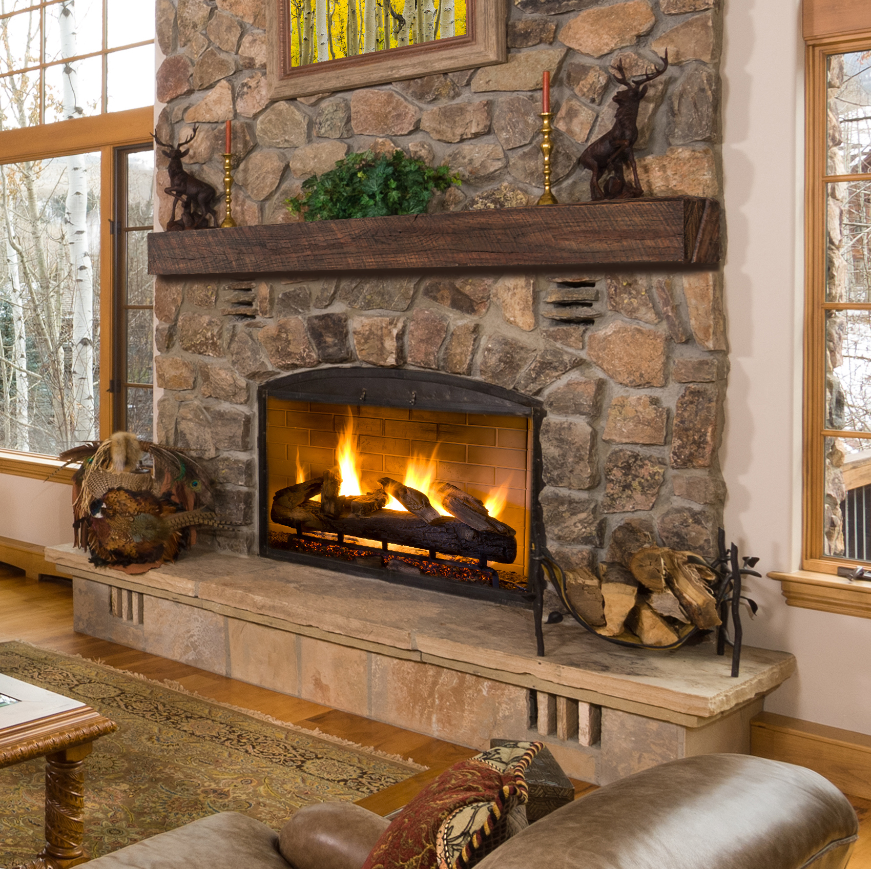 For use indoors or out, this ASTM E136 non-combustible mantel shelf was fashioned from a White Oak barn beam. Reclaimed from the barn it once supported, this statement piece is rich with history and character. Made in the USA, the beautiful nuances created by its labor-intensive past and Mother Nature have been cast and preserved by a patented molding material. Each piece is then meticulously